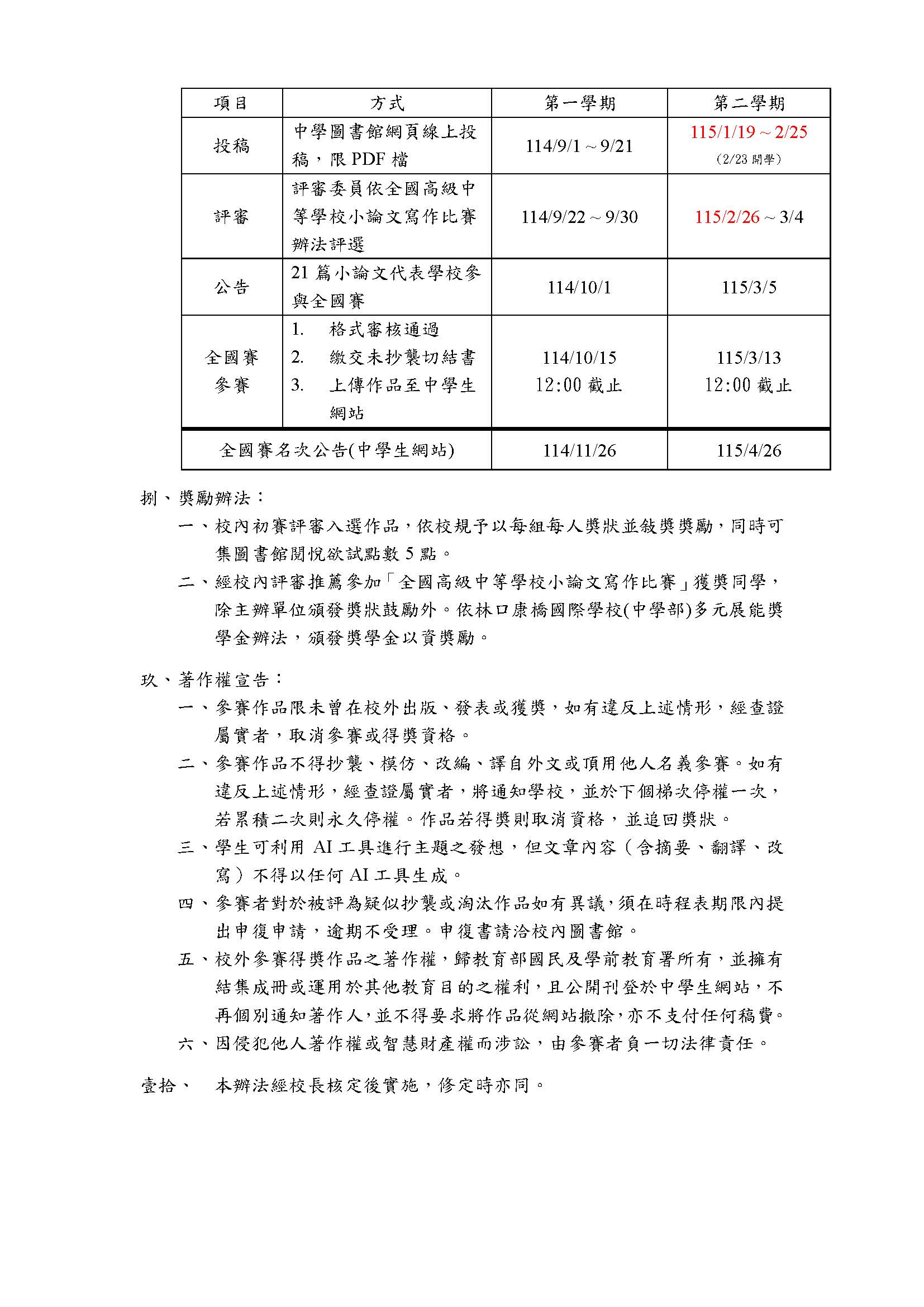 實施辦法 小論文寫作格式 比賽期程 報名校內賽 全國賽得獎名單
