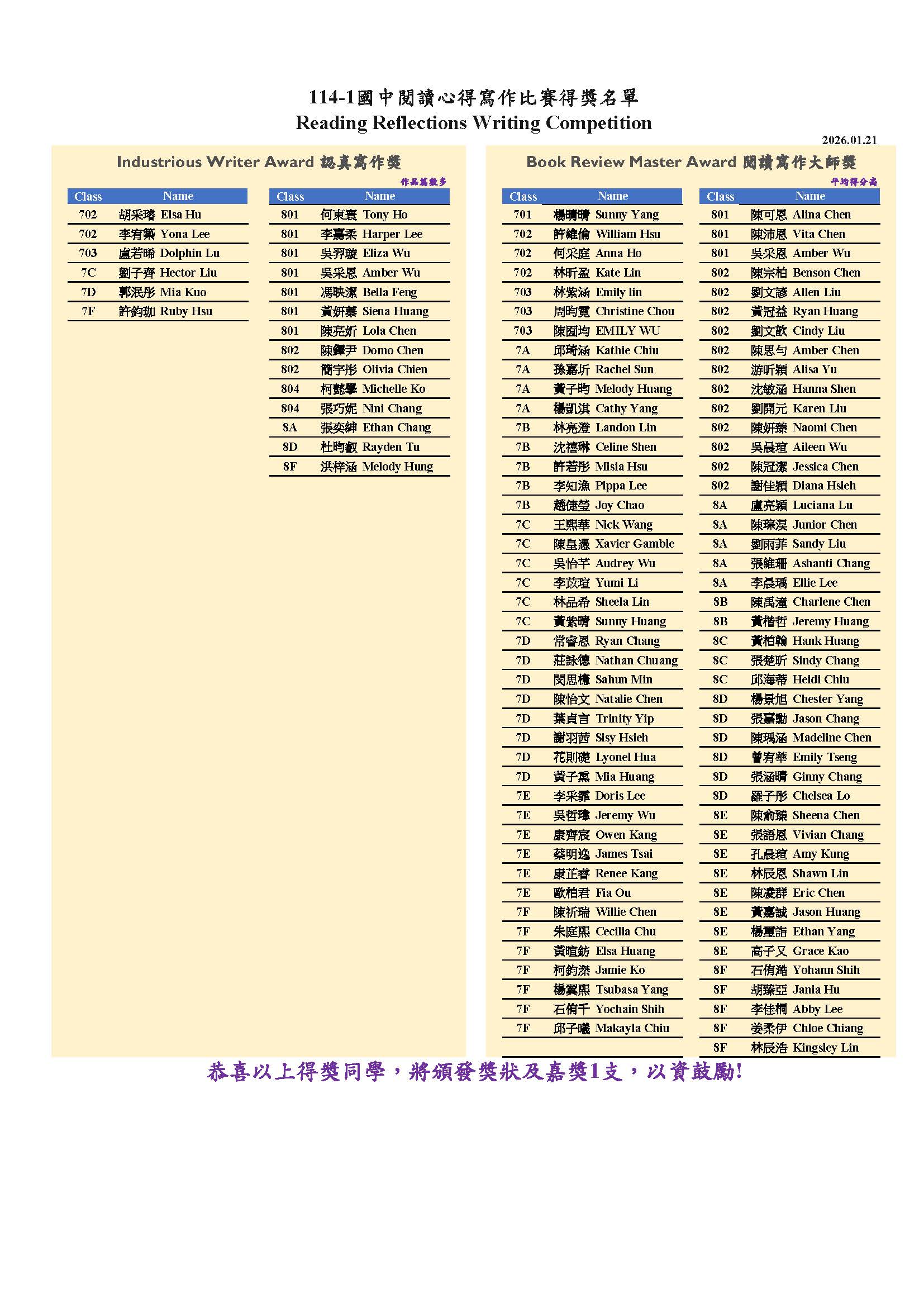 Reading Reflection Comp. 閱讀心得比賽 國中組