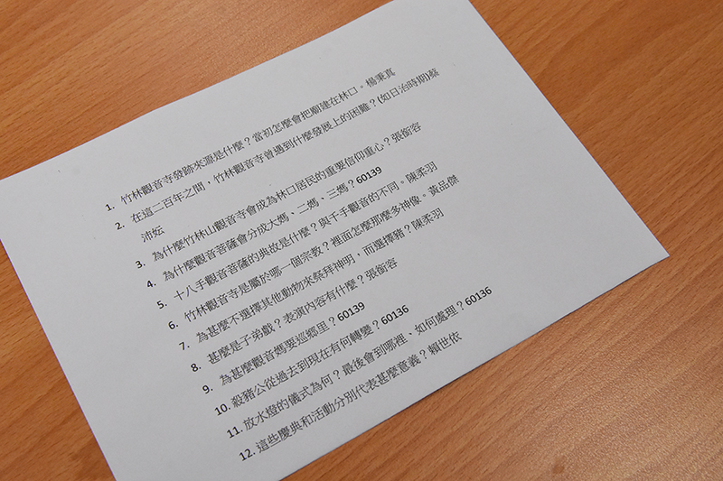 我們訪問了校內老師(居住於林口區20多年)與社區大學專門研究竹林山觀音寺的專家。